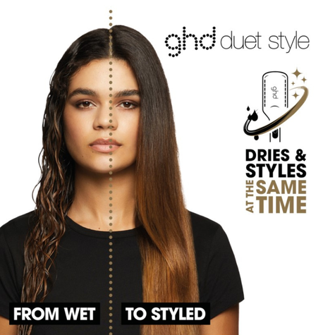To Dry: Using ghd’s new air-fusion™ technology, the duet style channels airflow through the drying chamber in between the plates and on the outer edges of the styler to dry hair quickly and thoroughly. The drying function uses a brushless motor to propel the air through the vents. This is paired with four plates on the styler that feature ghd’s iconic ultra-zone™ technology.