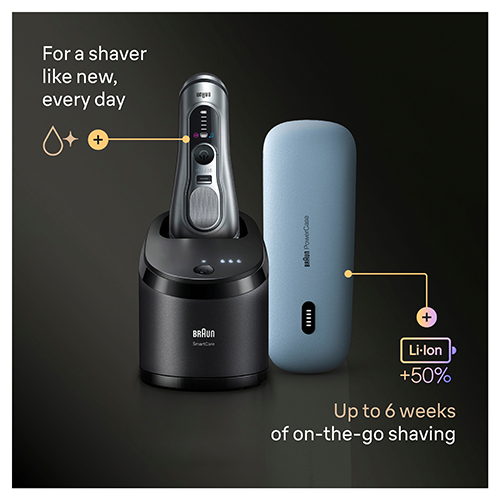 This model includes two premium accessories: the 6in1 SmartCare Center, which cleans and charges your shaver for peak performance, and the PowerCase, a mobile charging case that offers up to 6 weeks of shaving with 90 minutes of backup power.