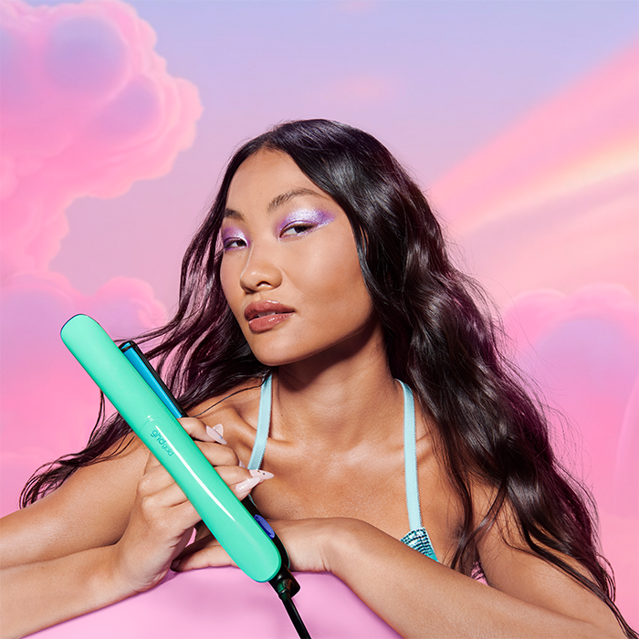 The GHD Gold Hair Straightener delivers sleek, smooth, shiny results from root to tip - and the limited edition Jelly Mint colourway brings a playful twist to your styling routine. Finished in Jelly Mint with Glazed Blue trims, it comes with a matching heat-resistant bag and mat included.