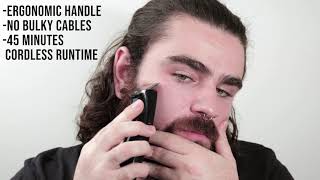 The Baby Beast Trimmer includes 4 trimming combs for perfectly consistent length control for beards, stubble, or other body hair.